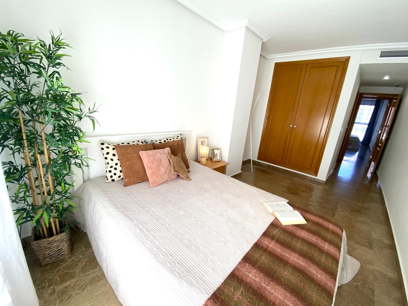 Dispone de tres habitaciones dobles, todas exteriores y equipadas con armarios empotrados, que garantizan amplitud y confort.